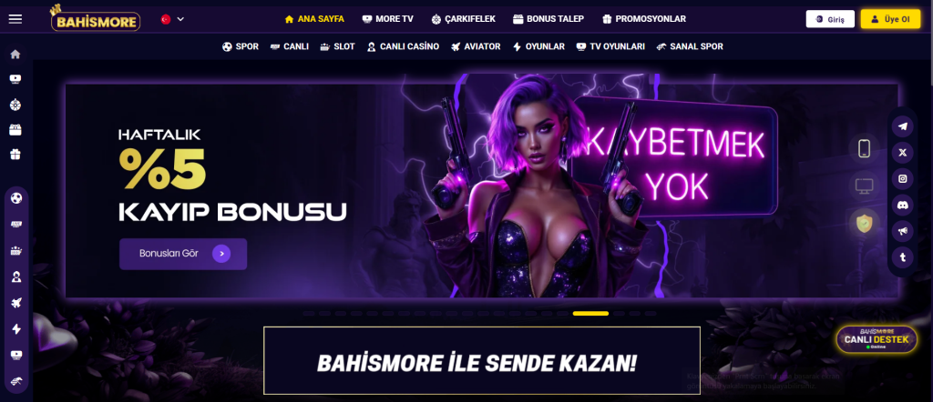 Bahismore bahis sitesini tanımadan bu iş olmaz! Bahis sektörüne giriş yapacak kumarcıların en favori olan siteleri arasında yer almakta olan Bahismore’a yakından bakmak istiyoruz. Çünkü siteyi tanımak demek aslında site içi birçok konuya da parmak basmak demektir. Sizi temin ederiz, firma, her bahisçiyi tatmin edebilecek çok sayıda içeriği paylaşmaktadır. Bizler de bu izleri aşağıdaki başlıklar üzerinden incelemeye yola çıkıyoruz: